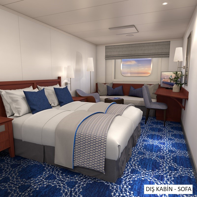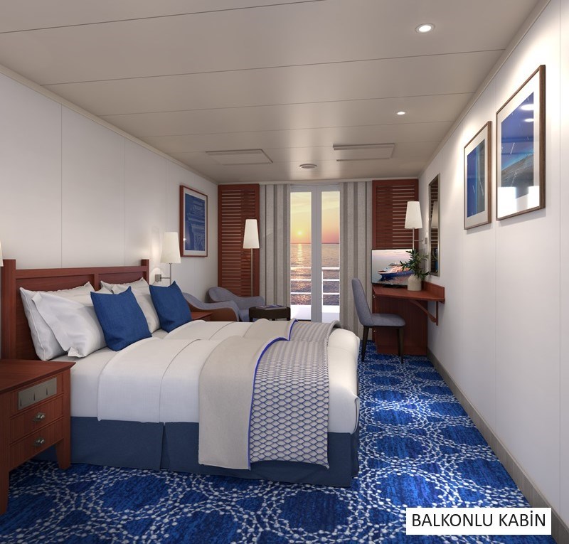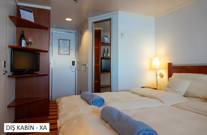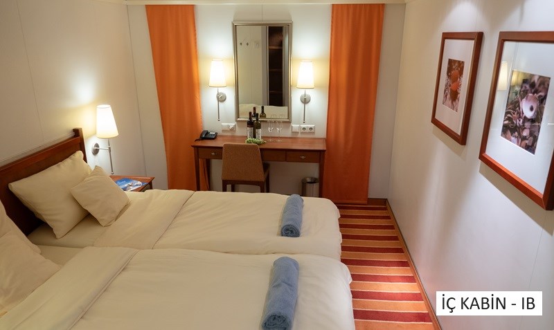 | Tarih | Seçenekler | İki Kişilik Odada Kişi Başı | 31.01.2026 | IA-İç Kabin | 779,00 € | IB-İç Kabin | 889,00 € | IC-İç Kabin | 969,00 € | XBO- Görüş Engelli Dış Kabin | 1.009,00 € | XA-Dış Kabin | 1.009,00 € | XB-Dış Kabin | 1.059,00 € | XC-Dış Kabin | 1.139,00 € | XD-Dış Kabin | 1.219,00 € | BA-Balkonlu Kabin | 1.489,00 € | SJA-Suit | 1.629,00 € | SJB-Suit | 1.719,00 € | SG-Grand Suit | 1.989,00 € | SH- Grand Suit | 2.089,00 € |